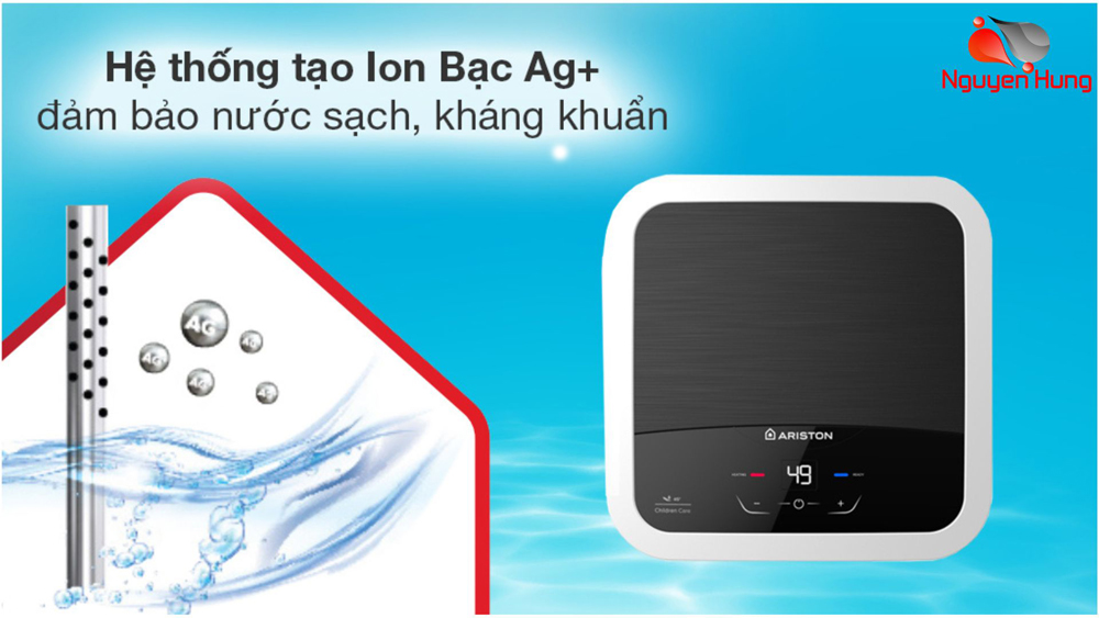 Máy nước nóng Ariston AN2 15 LUX-D AG+ với công nghệ Ion Bạc kháng khuẩn làm sạch nước, giúp đảm bảo sạch khuẩn, ngăn ngừa sự ảnh hưởng của các loại vi khuẩn như: E.C. coli, Salmonella, Legionella, nấm mốc và các loại vi khuẩn khác... để bạn và gia đình an tâm tận hưởng, thư giãn cùng dòng nước được kháng khuẩn an toàn.