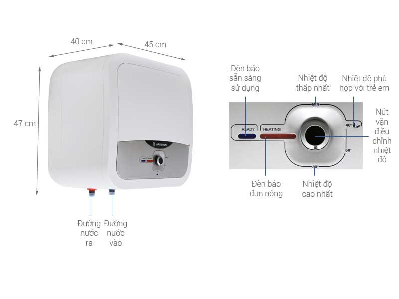 Thiết kế theo phong cách thời thượng Châu Âu, máy nước nóng gián tiếp Ariston mang vẻ đẹp trang nhã, sang trọng nhưng không kém phần bền bỉ cho mọi sản phẩm