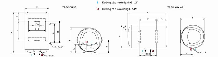 - Dòng máy treo tường dung tích lớn (40-100 Lít)