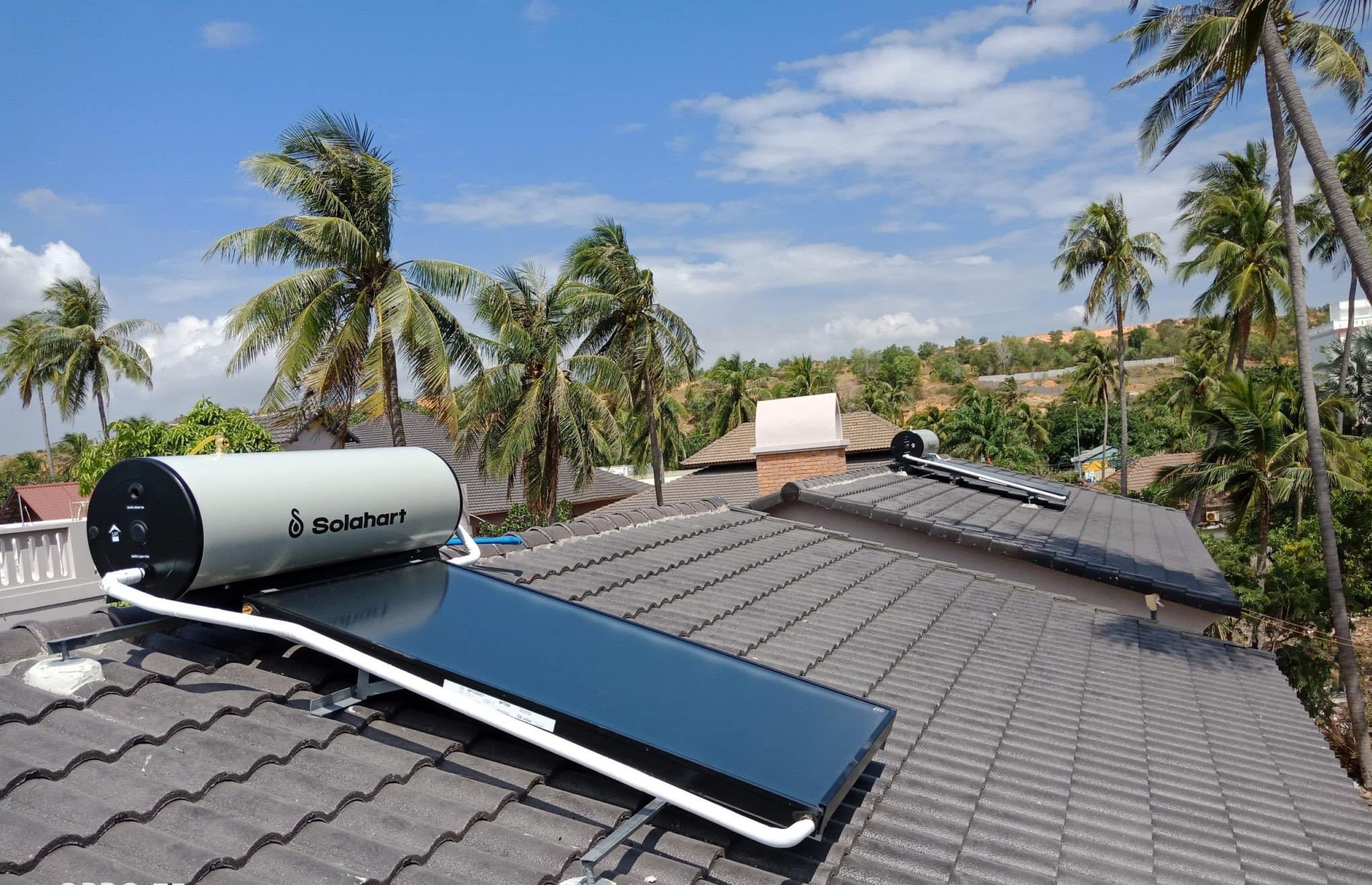 Thi công lắp đặt thực tế máy nước nóng năng lượng Solahart công trình mái ngói