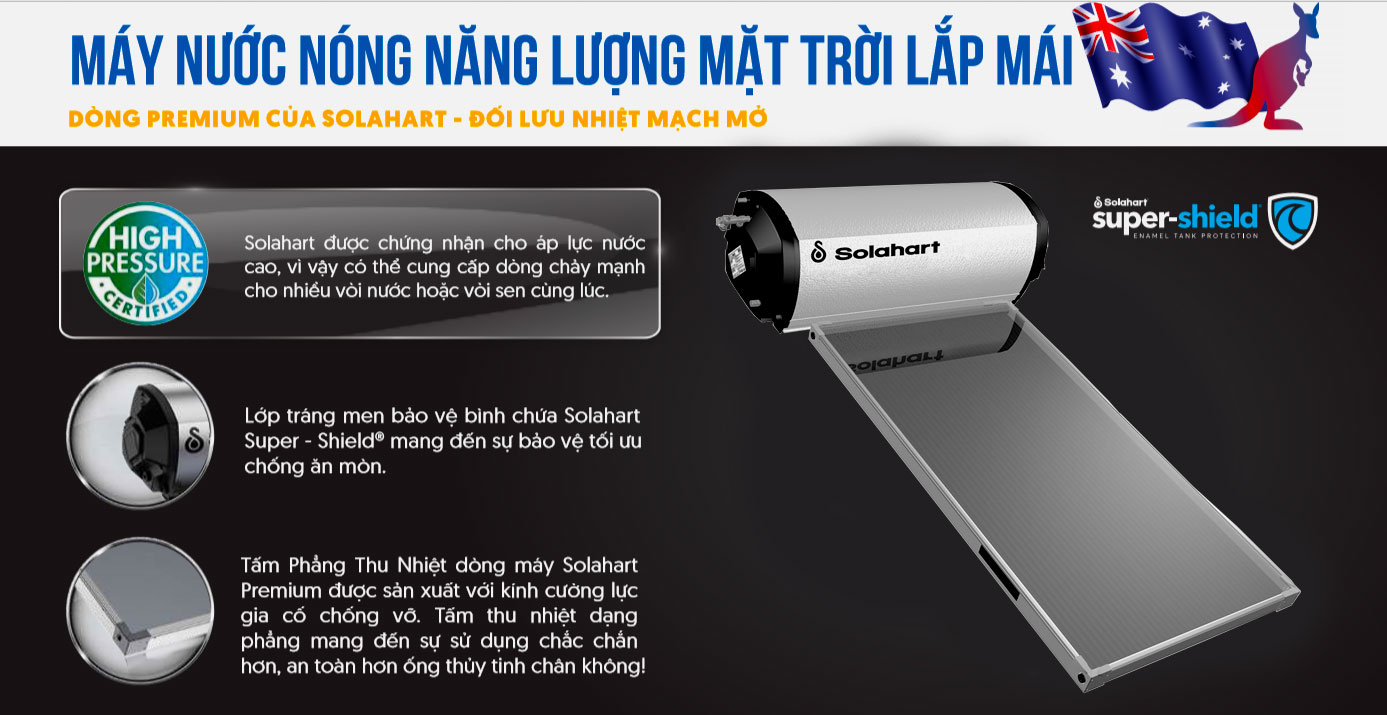 Tính năng bình nước nóng Solahart 180L tấm thu nhiệt phẳng