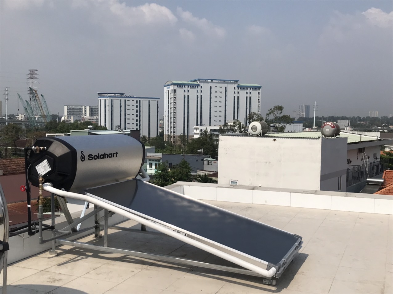 Thi công lắp đặt thực tế máy nước nóng năng lượng Solahart công trình mái bằng
