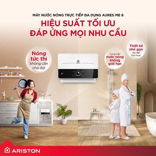 - Bình nóng lạnh Ariston Ariston Aures ME 6 đa điểm trực tiếp
