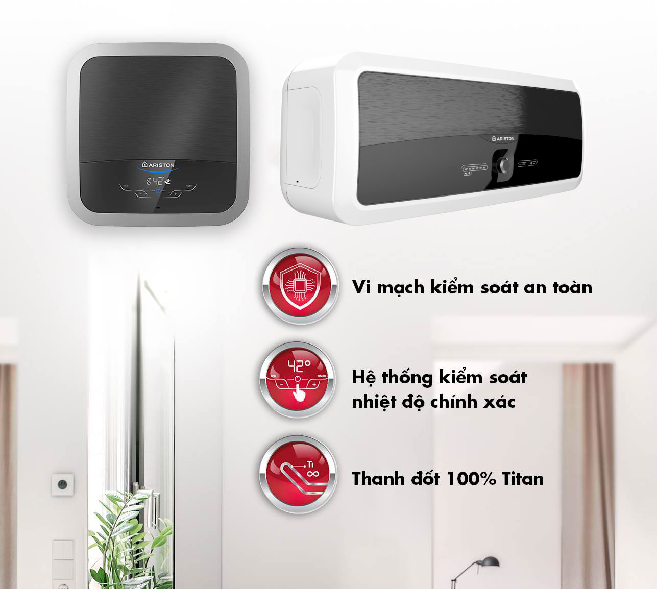 Thanh đốt 100% Titan, bảo hành trọn đời: Titan là kim loại đặc biệt với ưu điểm kéo dài tuổi thọ thanh đốt, vượt trội hơn rất nhiều so với thanh đốt bằng thép không gỉ thông thường. Bên cạnh đó, thanh đốt 100% Titan của Ariston bảo hành trọn đời, mang lại hiệu quả làm nóng nhanh, chống bám cặn và bền bỉ với thời gian.
