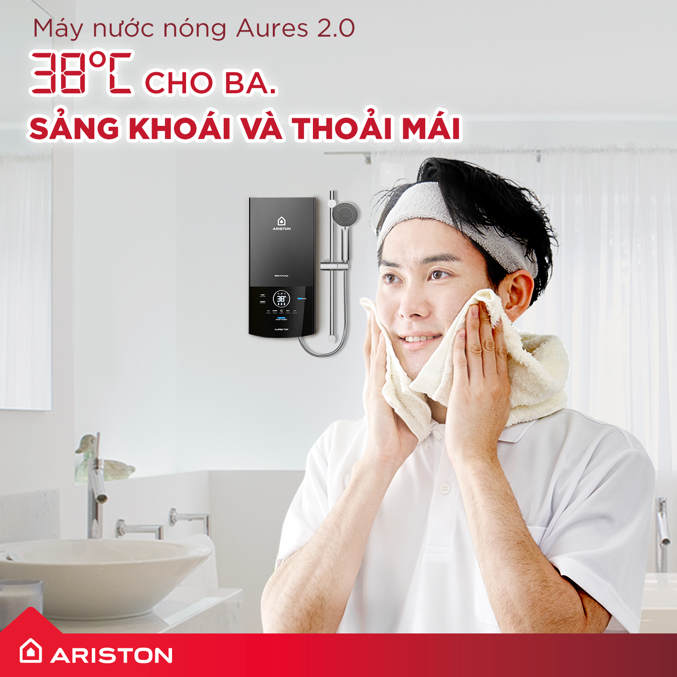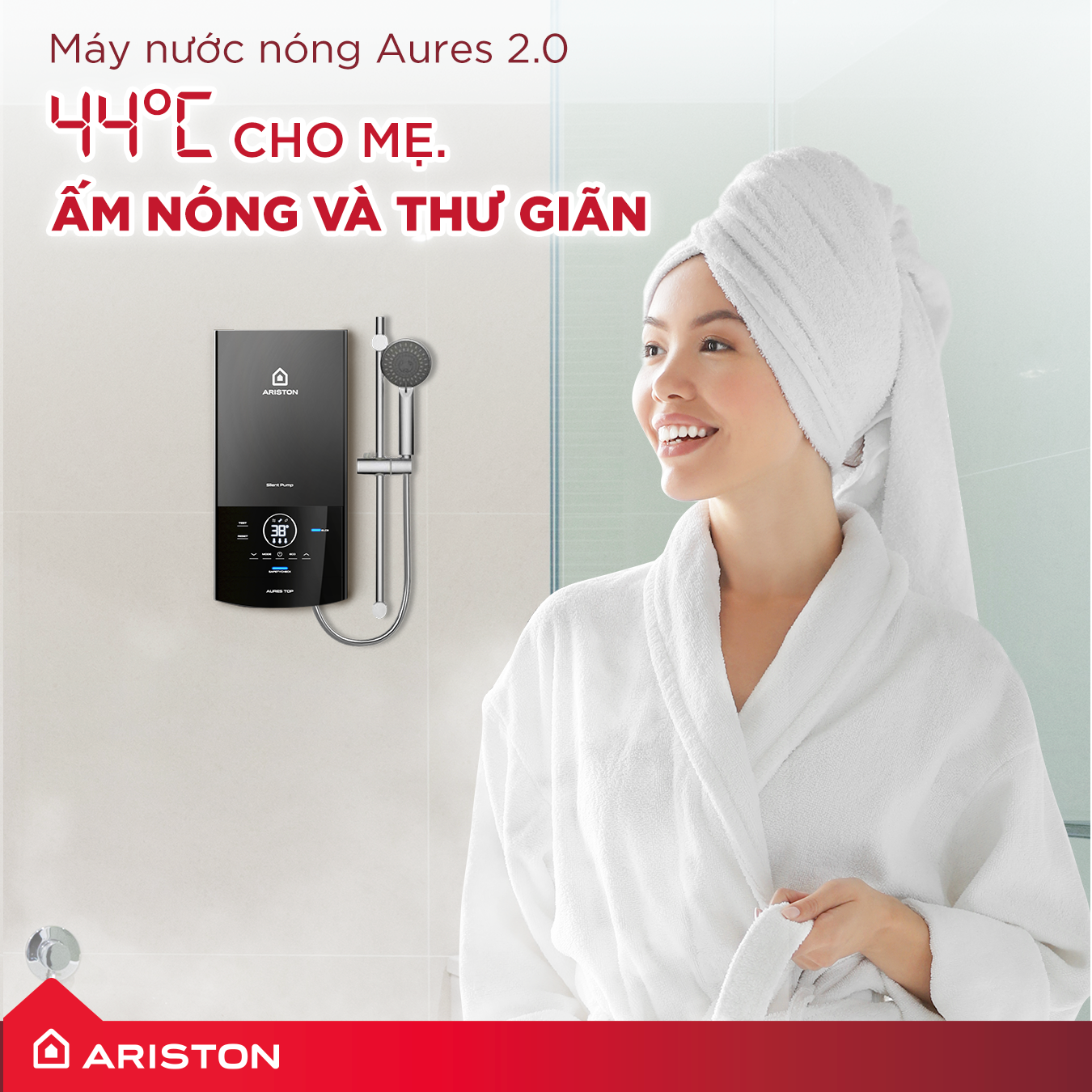 ARISTON AURES TOP, TUYỆT CHIÊU NHANH GỌN LẸ GHI NHỚ NHIỆT ĐỘ YÊU THÍCH CỦA GIA ĐÌNH