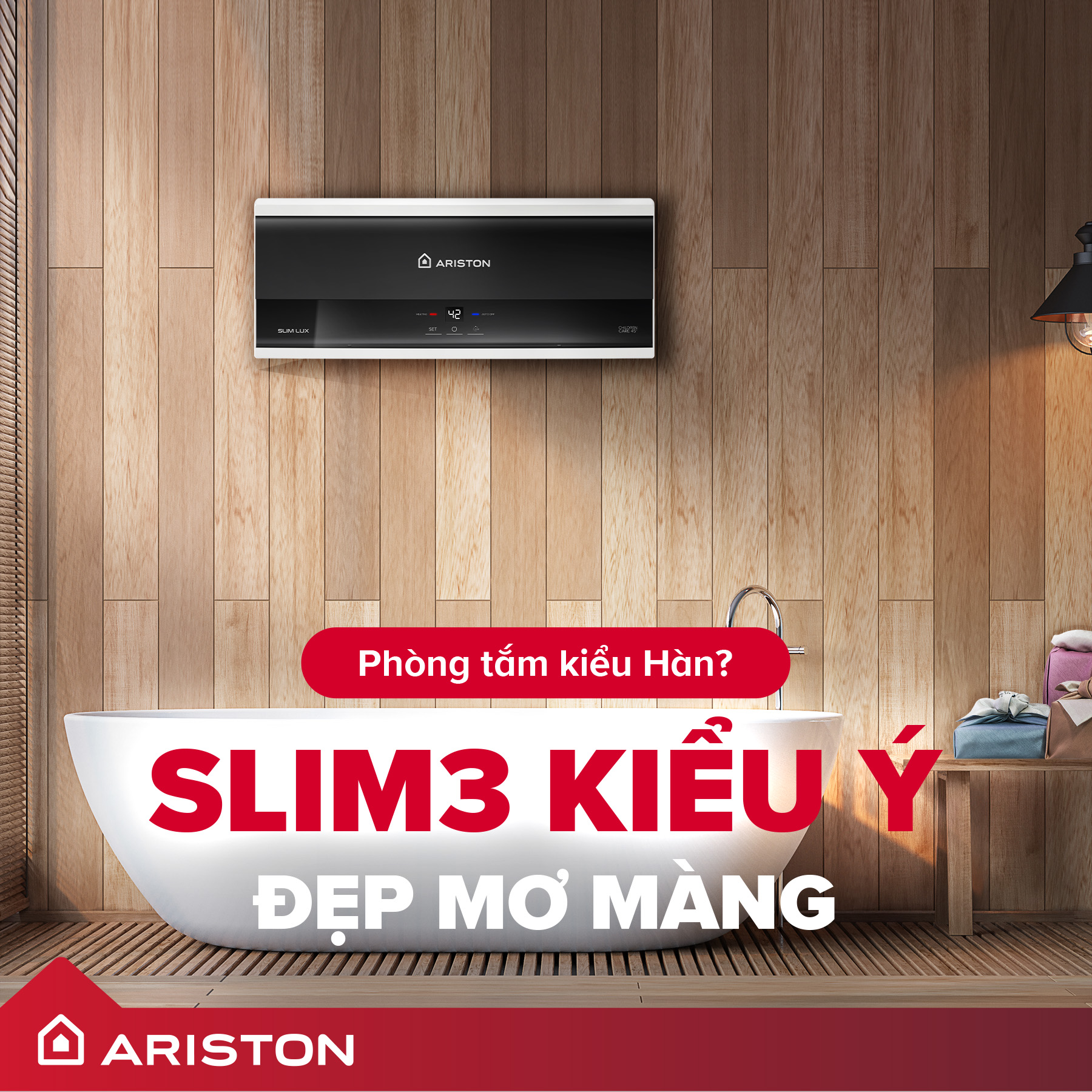 Cùng Ariston Slim3 kiểm chứng vẻ đẹp của mình với mọi phong cách nhà tắm, mọi vị trí sắp đặt. Dù Việt, Hàn, Nhật, Ý, Bình nóng lanh Ariston Slim3 kiểu Ý vẫn đẹp như ý.