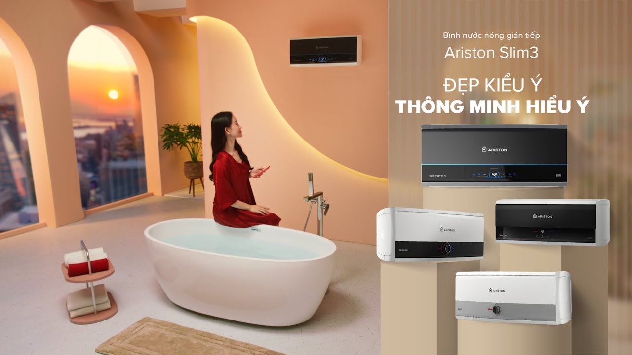 Bình nước nóng gián tiếp Ariston Slim3. ĐẸP KIỂU Ý, THÔNG MINH HIỂU Ý