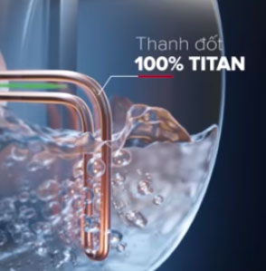 · Thanh đốt 100% Titan: với chất liệu đặc biệt, thanh đốt giúp máy hoạt động trong môi trường âm độ với hiệu suất làm nóng không đổi, đảm bảo nước lạnh đầu vào không ảnh hưởng đến nhiệt độ nước đã đun.