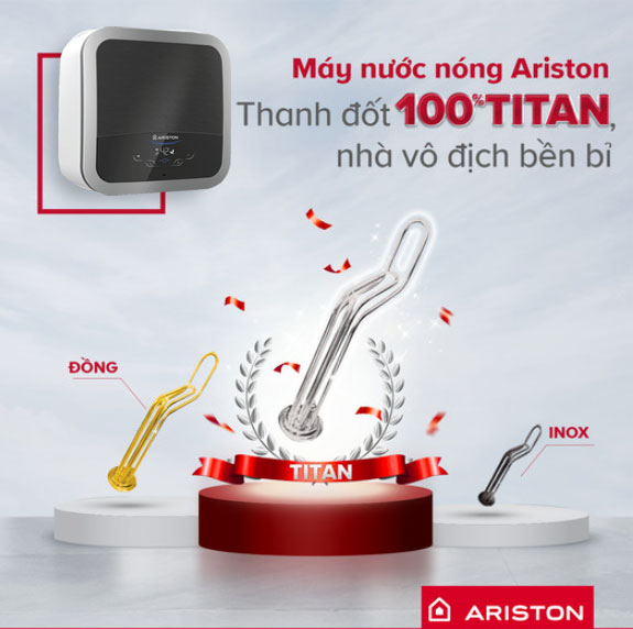 MÁY NƯỚC NÓNG ARISTON – THANH ĐỐT 100% TITAN, NHÀ VÔ ĐỊCH BỀN BỈ.