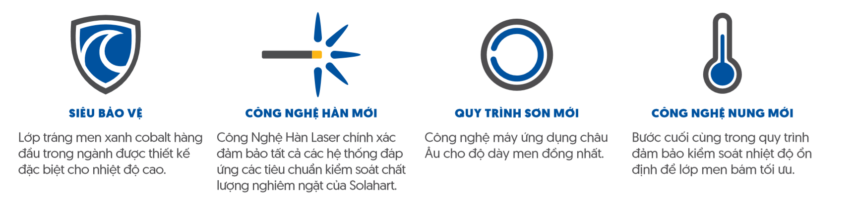 Lớp tráng men bảo vệ bình chứa với công thức tráng men màu xanh dương độc đáo, dẫn đầu ngành công nghiệp của Solahart mang đến sự bảo vệ bình chứa tối ưu chống ăn mòn, cũng như được thiết kế đặc biệt để chịu được nhiệt độ cao mà máy nước nóng năng lượng mặt trời phải chịu. Trong quá trình sản xuất, bình chứa được hàn lại với nhau bằng cách sử dụng công nghệ laser chính xác và công thức độc đáo được áp dụng với công nghệ sơn phủ dòng chảy Châu Âu để đảm bảo lớp tráng men đồng nhất.