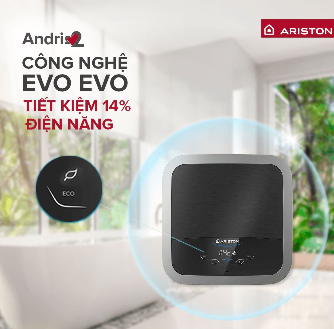 Andris2 Top Wifi là dòng sản phẩm thông minh hiện đại với công nghệ Wifi được tích hợp trong máy, giúp cài đặt thời điểm cần nước nóng và nhiệt độ mong muốn dù ở bất cứ đâu, tiết kiệm thêm 25% điện năng tiêu thụ. Vi mạch kiểm soát đảm bảo an toàn tuyệt đối khi sử dụng. Công nghệ Ion Bạc làm sạch nước. Ngoài ra, sản phẩm còn được tích hợp bộ điều khiển và hiển thị nhiệt độ chính xác từng độ C. Công nghệ Eco Evo tự điều chỉnh nhiệt độ thông minh chuẩn Châu Âu, giúp tiết kiệm 14% điện năng.